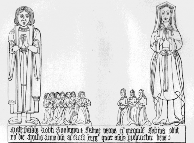 Robert Goodwyn (died 1532) and his wife Sabine with seven children.