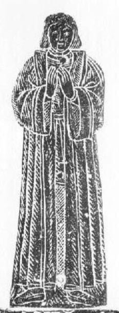 Phillipa de Beauchamp (died 1384), widow of Sir Guy de Beauchamp (died 1360). After her husband’s death she retired to the religious life in Shouldham Priory , and is depicted with the ring of chastity.