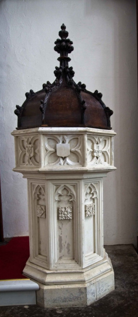 The Font was made of Portland stone in 1788, when it cost 9 guineas, with a further £4.3.0d to install it. The bowl of the medieval font is be found in the porch.